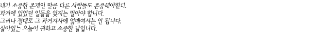 진정으로 내가 자애 자존할 수 있는 경지에 도달하면 이 세상 만물 중에 귀하지 않은 것이 없고 필요치 않은 것이 없음을 너무나 쉽게 느낄 수 있습니다. |