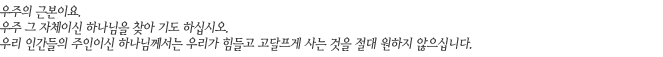 * 온 우주를 창조하셔서 우리를 이 세상에서 살게 해주신 하나님께 감사하고 또 하나님의 뜻에 따라 충실하게 살기 위해서는 끊임없이 간절하게 기도하고 기도하는 마음으로 채우십시오.
